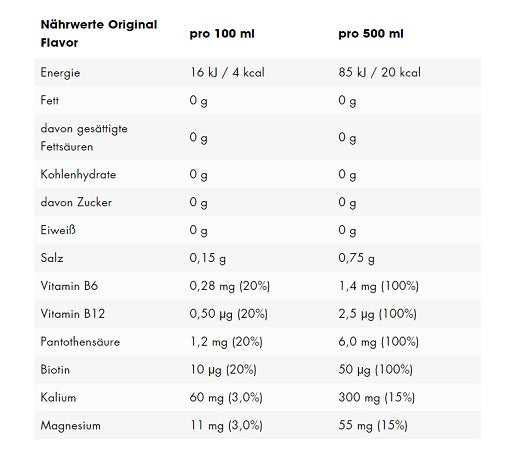 Vitamine und funktionelle Inhaltsstoffe pro 500 ml: