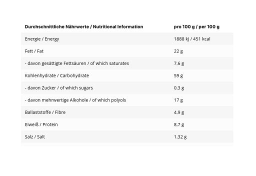 Nährwerte (Beispielangaben, Quelle Amazon/Händlerangaben):
